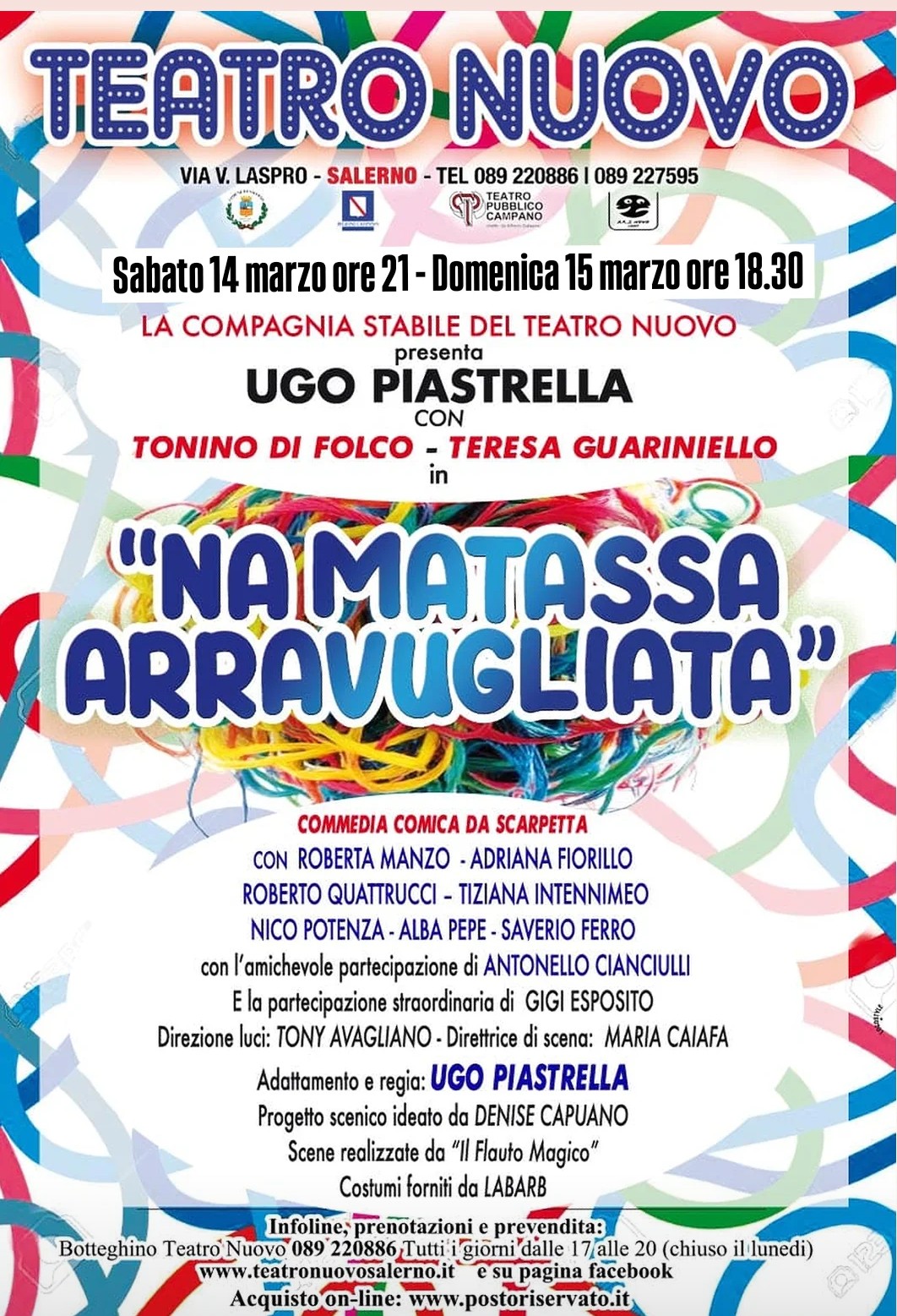 Sabato 7 marzo alle 21.00 e domenica 8 marzo alle 18.30 va in scena "Na Matassa arravugliata", con Ugo Piastrella, Teresa Guariniello e la Compagnia del Teatro Nuovo.